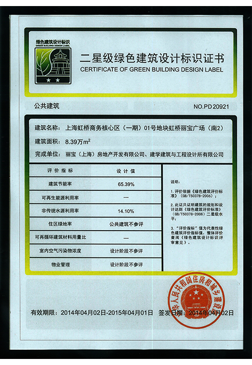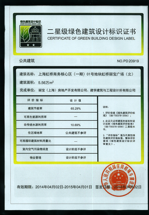 上海市勘察設(shè)計(jì)行業(yè)協(xié)會(huì) 2013 年“上海市優(yōu)秀工程設(shè)計(jì)二等獎(jiǎng)"